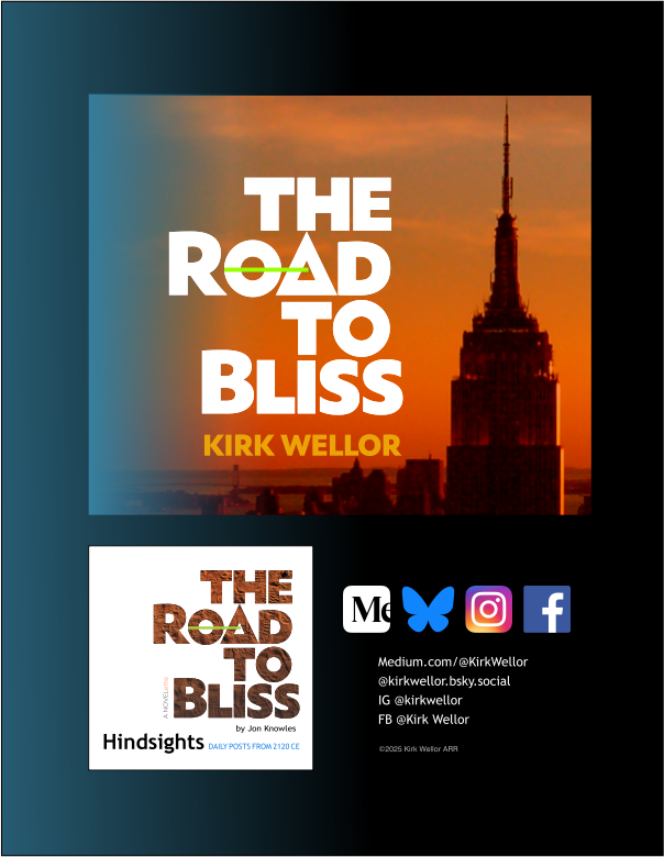 As The Road to Bliss series works through development, Jon Knowles will post his Hindsights from 2120 CE via social media to band with the early climate and quantum fiction writers from the 2020’s, vor-text with search engines, and connect our fictional 2020/2120 Möbius loops.